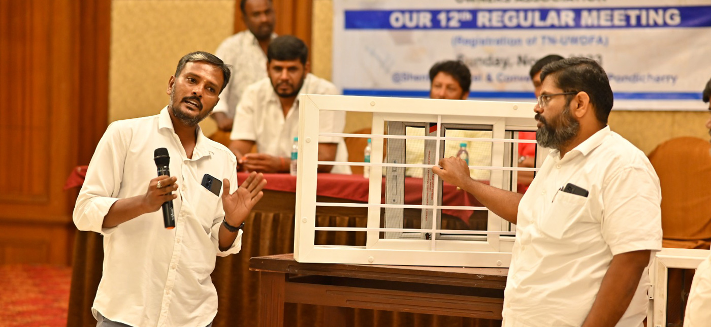 The Tamilnadu Upvc Window and Door Fabricating Owners Association (TN- UWDFA) is a non-governmental organisation founded by the Upvc fabrication industry's pioneers and pillars. It was started to promote and safeguard Upvc windows and doors industry and to circulate the advantages they offer among the Tamilnadu Upvc sector and the general public which is an initiative taken by 18 charter members in the year June 2022. The demands of associates are taken into consideration while designing our programmes and services. The main objective of TN-UWDFA operations is to effectively communicate with all stakeholders. Being an organisation that is solely focused on the business, it is devoted to provide a platform that will enable everyone in the sector to speak with a single voice. It is about to redefine the crucial support in terms of growth and development dynamics that the economy needs in a highly competitive and knowledge-based environment.